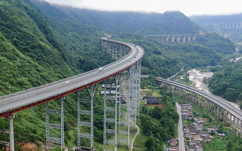 四川雅西高速干海子特大橋是世界上最高的鋼管混凝土桁橋,它的建造克服了高海拔、復(fù)雜地形等困難,為當(dāng)?shù)氐慕煌ㄟ\(yùn)輸和經(jīng)濟(jì)發(fā)展做出了重要貢獻(xiàn)。