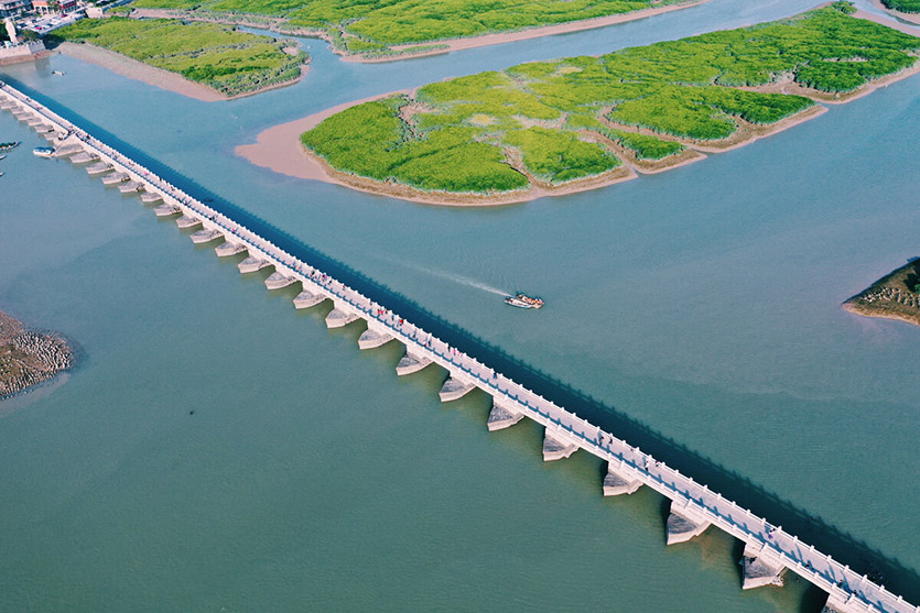 何以見(jiàn)得呢?因?yàn)樗鼊?chuàng)造了多個(gè)世界第一:世界第一座跨海大橋、世界第一座采用浮運(yùn)架梁技術(shù)架設(shè)的橋梁、世界第一座采用生物固礎(chǔ)的橋梁、世界第一座采用筏形基礎(chǔ)的橋梁。
