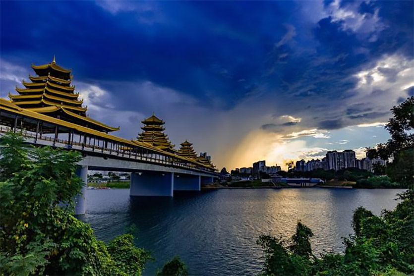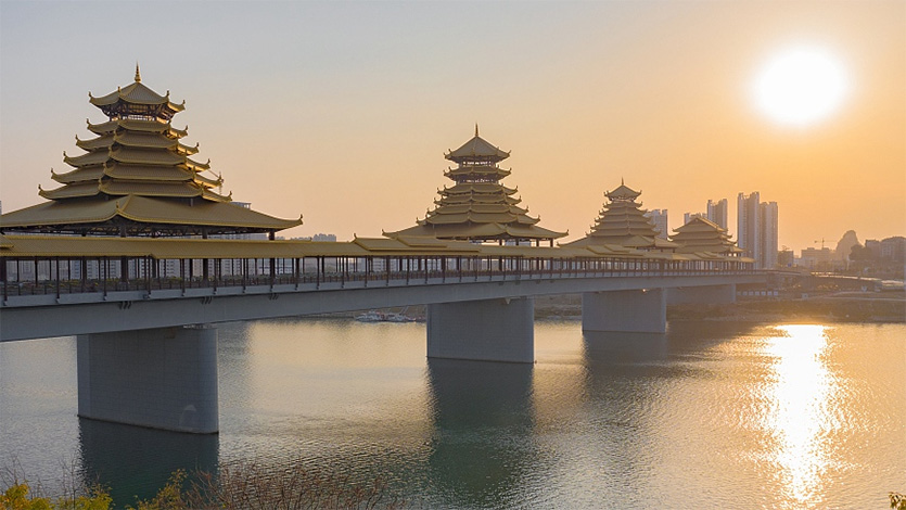 柳州鳳凰嶺大橋是柳州市的第一座公軌兩用橋。它是鼓樓式跨江風(fēng)雨橋,也是世界最大的風(fēng)雨橋,充滿侗族民族元素。它造型優(yōu)美,溝通兩岸,為過(guò)往的行人遮風(fēng)擋雨,觀賞性與實(shí)用性俱佳。與同在柳州的另外一座著名風(fēng)雨橋——三江縣程陽(yáng)風(fēng)雨橋遙相呼應(yīng)。